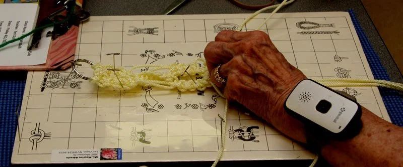 Making a macrame sampler.
